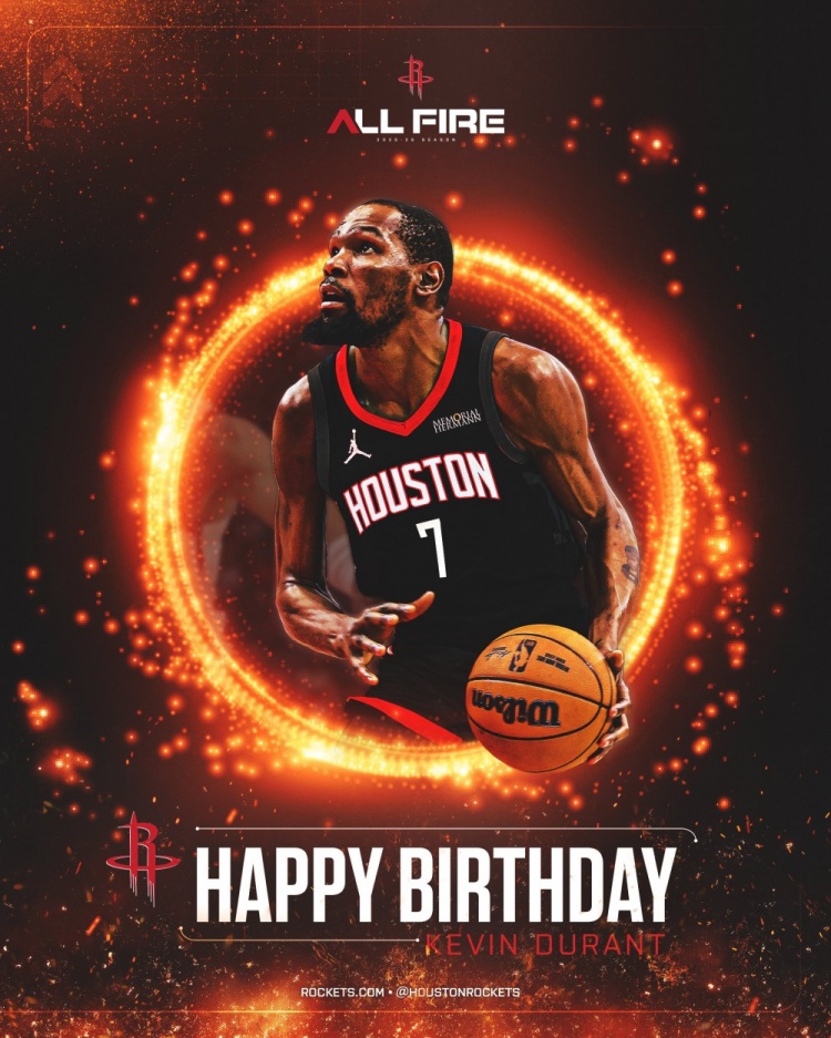 官方写道:“生日快乐,凯文-杜兰特!休城,给我们的球员一些爱”