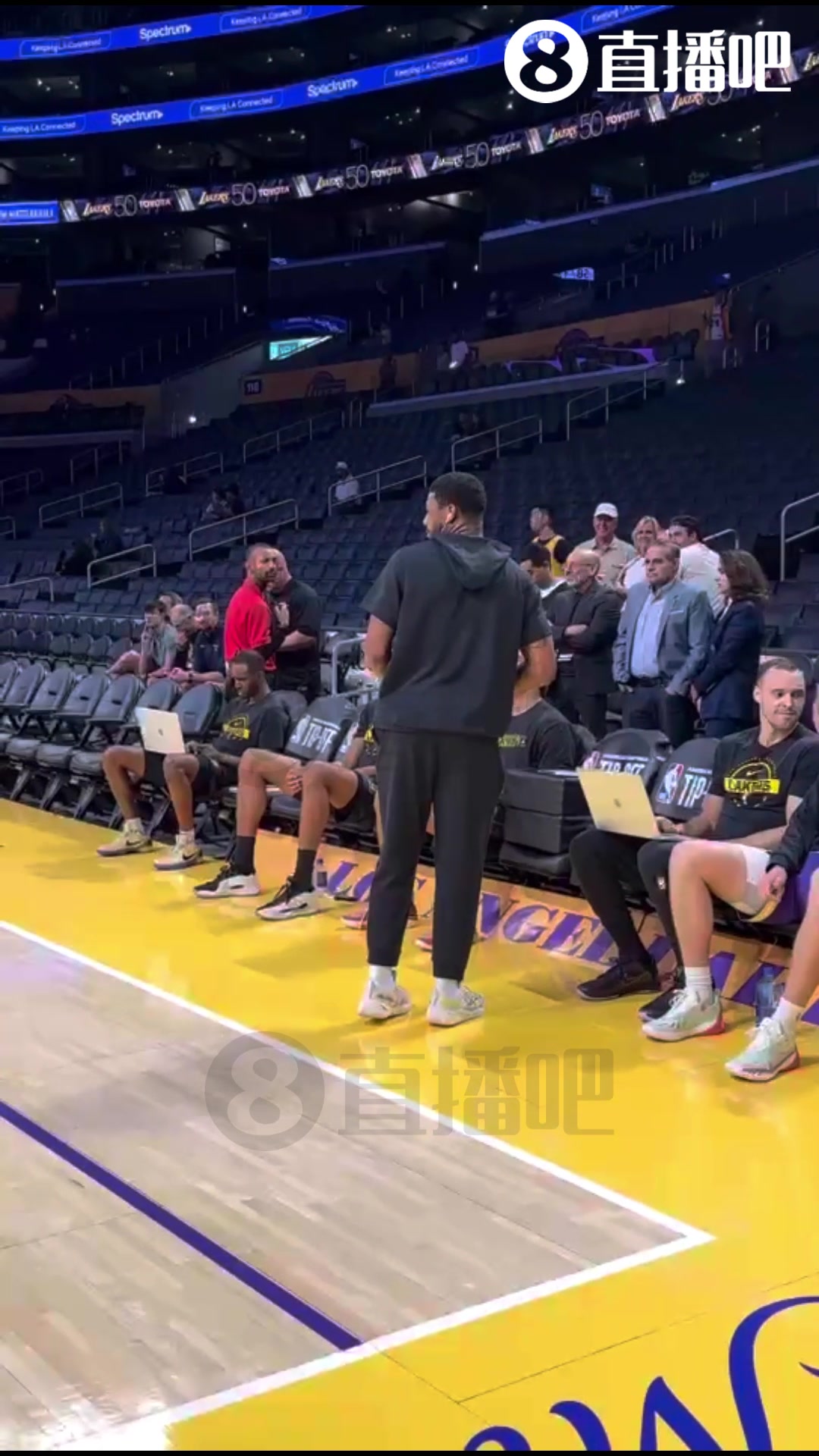 蒙的吧小吧观看湖人赛前训练 斯玛特底角背投超远三分命中