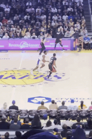手痒了!湖人vs热火第四节暂停期间 詹姆斯在篮下认真练习运球
