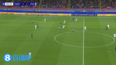 巴萨半场1-1巴黎数据:射门7-6,射正2-2,得分机会2-3