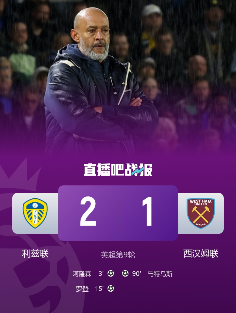 10月25日讯 英超第九轮,西汉姆客场1-2不敌利兹联。 努诺执教西汉姆后遭遇三连败,1平3负仍未取得首胜。 西汉姆1胜1平7负,先赛暂排倒数第二,联赛已三连败、六场不胜。